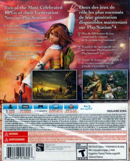 FINAL FANTASY X/X-2 HD Remaster brings together FINAL FANTASY X and FINAL FANTASY X-2, along with FINAL FANTASY X: Eternal Calm and FINAL FANTASY X-2: LAST MISSION, each originally exclusive to the Japanese market. Cross-Save Functionality - Players can transfer their save and continue their progress across the PlayStation®4 system, PlayStation®3 system, and the PlayStation®Vita handheld entertainment system. (PlayStation®3 and PlayStation®Vita versions sold separately.) Ability to Switch Between Original and Remastered Soundtrack - Play FINAL FANTASY X with the beautifully remastered soundtrack or, new to the PlayStation®4 system version, switch back to the original classic tracks. Remote play - Supported for the Playstation®Vita handheld entertainment system.