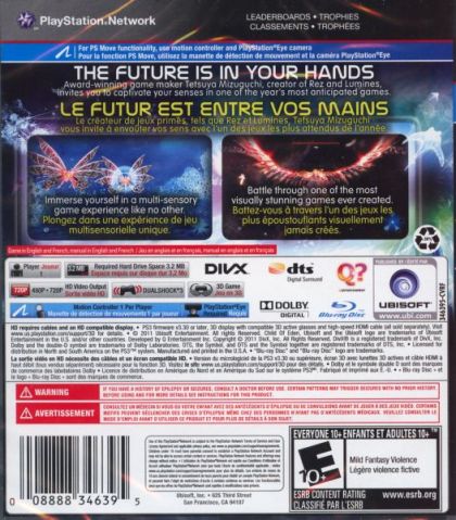 Under the direction of world-renown creative director Tetsuya Mizuguchi. The PS3 version of the game is PlayStation Move compatible, but it's not required to play the game. With spectacular visuals and audio synchronized to the player's movements, Child of Eden is a captivating game that sets players off on a trip to decontaminate an unknown virus to restore hope and peace to Eden.