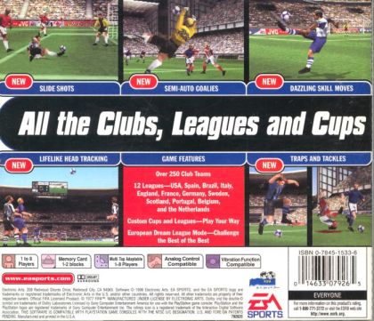 This was the third FIFA title in a little over a year. It incorporates 42 national sides, as well as 250 club teams from 12 different leagues, to play a complete true-to-life season, the preset Super League, or a league or cup of your own design. Formations and tactics can be set, and players can be moved between teams.