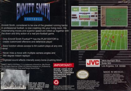 The one thing that sets it apart from others is the ability to create and save (using battery back-up) 64 unique plays that can be accessed at any time during a game along with the standard pre-set plays. While it does not have NFL or NFLPA licenses, it does feature then former Dallas Cowboys running back star Emmitt Smith, who is also on the front cover of the box.