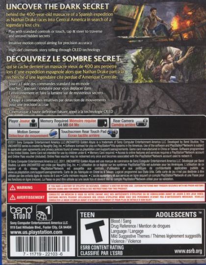 Uncover the dark secret behind the 400-year-old massacre of a Spanish expedition as Nathan Drake follows the murderous trail of an ancient and secret Spanish sect. Caught in the middle of a rivalry between Jason Dante - his old friend - and Marisa Chase - the granddaughter of an archeologist who has mysteriously vanished without a trace - Nathan Drake races into the treacherous river basins, undiscovered temple ruins and karst caverns of Central America in search of a legendary lost city, only to find himself pushed to the edge of the Golden Abyss.