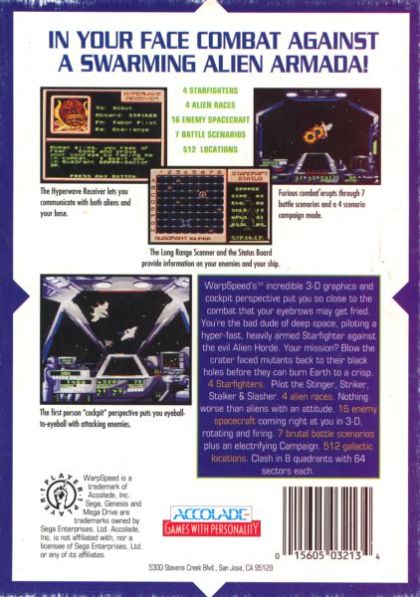 The starfighter ships come equipped with a computer, engine, shield, weapons, and missiles which can be damaged from enemy combatants or space debris like asteroids. The ship also comes with a Long Range Scanner, which shows the locations of enemies on the map. The map itself is made up of 64 square sections. Finally, the ship also has a Hyperwave Reciever, that lets the player communicate with both the aliens and the player's base.