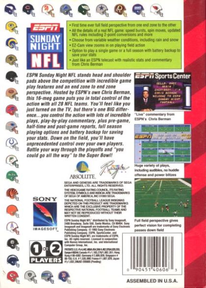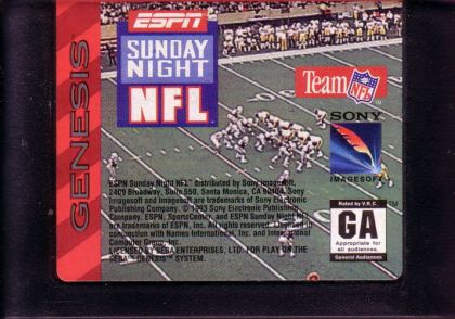 ESPN Sunday Night NFL was one of the many football games released back in the day. It features all 28 official NFL teams and their respective logos, but doesn't feature a license from the NFLPA, so there are no actual players names in the game.
