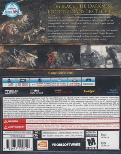 As fires fade and the world falls into ruin, developer FROMSOFTWARE and director Hidetaka Miyazaki continue their critically-acclaimed and genre-defining series with Dark Souls III. Fans and newcomers alike will get lost in the games hallmark rewarding gameplay and immersive graphics. Now only embers remain...