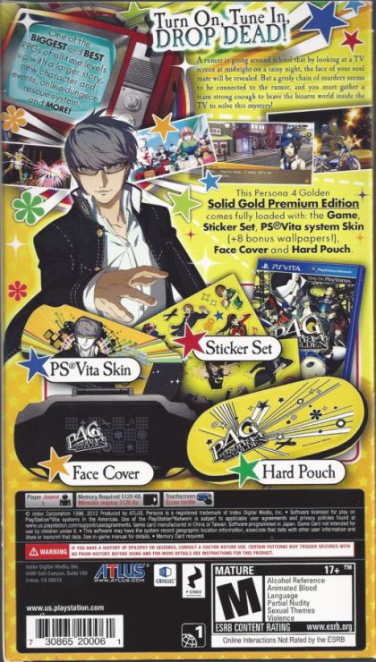 Persona 4: Golden, released in Japan as Persona 4: The Golden, was announced in August 2011 as an enhanced port of Persona 4 for the portable PlayStation Vita. It was originally planned by Atlus to be a PlayStation Portable title, similar to Persona 3 Portable, which would have required removing some of the features of the PlayStation 2 game. However, the Vita provides sufficient resources that has allowed Atlus to expand the game. It is an expanded version of the PlayStation 2 title, adding new features and story elements to the game. A new character named Marie was added to the story. Additional Personas, character outfits, and expanded spoken lines and anime cutscenes are included as well as two new Social Links for Marie and Tohru Adachi. The game supports the wireless networking features of the Vita, allowing a player to call in help from other players to help in dungeon battles. Another new feature is a garden that produces items the player can use in the various dungeons. The game was released in Japan on June 14, 2012 Persona 4: The Golden is also the first Persona game to be released in traditional Chinese.
