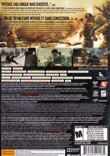 Spec Ops: The Line packs a full range of single and multiplayer features complete with competitive and team-based modes, as well as the ability to rank up and customize characters from two different factions. The juxtaposition of Dubai's bold and luxurious architecture and dizzying heights against the devastation outside, as well as the deep storyline mixed with ferocious combat situations, make Spec Ops: The Line a must-play game.