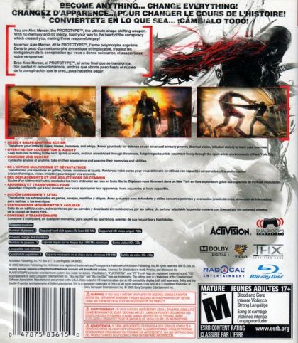 Discover what lies beyond the edge of evolution. An all-new, third-person open-world/action game, PROTOTYPE puts gamers at the helm of Alex Mercer – a genetically mutated shape-shifter with no memory of his past hell-bent on solving the mystery of his existence – as he tears through a densely populated New York City moving with Parkour-style fluidity and consuming anybody that gets in his way…assuming their physical identity, memories and abilities. Fueled by three key factions consisting of Alex, the Blackwatch (military) and a viral outbreak known as the Infected, players will venture into a deep, dark conspiracy 40 years in the making!