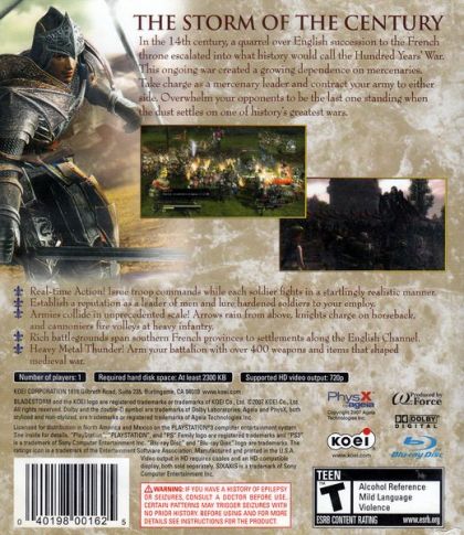 BLADESTORM: THE HUNDRED YEARS' WAR puts gamers in the role of a rogue commander and gives them direct control of mercenary units in fierce clashes with English and French forces. The game's unique style of action thrusts players into dynamic and ever-changing conflicts. Players must adjust their strategies as skirmishes evolve, and then deploy the unit best-suited to handle the challenge. At a player's command is a broad array of troops including infantry, archers, and cavalry, as well as a variety of specialized units such as elephant units, cannoniers, and castle siege specialists. While each unit is comprised of autonomous soldiers, each warrior will contribute to the assigned objective.