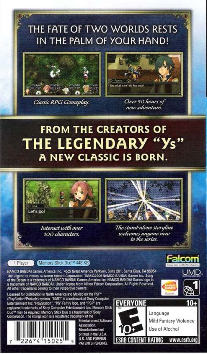 Be ready to embark on a brand new journey to the world of The Legend of Heroes! The creators of the legendary "Ys," "Brandish," and "Sorcerian" series brings this brand new adventure to the palm of your hand on PlayStation Portable system!