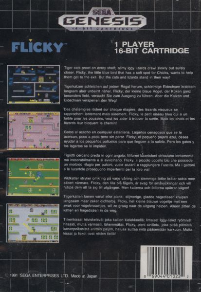Flicky next appears in Sonic's Ultimate Genesis Collection for Xbox 360 and PlayStation 3 (Sega Mega Drive Ultimate Collection outside of North America).