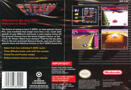 F-Zero is a futuristic racing game, set in the year 2560. The player chooses one of the four available hovercars and then can race with other hovercars in one of the gameplay modes - "Practice" or "Grand Prix".