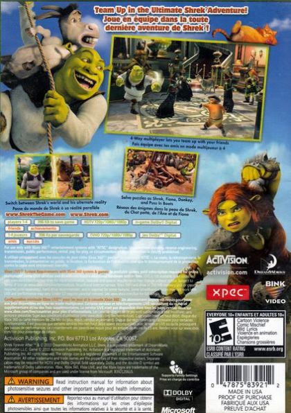 There's tons of living room fun to be had in the Shrek Forever After video game, which turns Shrek into a social and team experience that the whole family can enjoy. Players can join in on the action at any time in the co-operative multiplayer mode to form a team of up to four players. Together, teams can navigate through Shrek's two realities while solving mind-bending puzzles, and fending off Rumplestiltskin's army of baddies. Shrek, Fiona, Puss In Boots, and Donkey, all have their own unique game skills that will come in handy to progress through the game. A single-player experience is also offered, which allows the player to switch between the four characters as needed at any time.