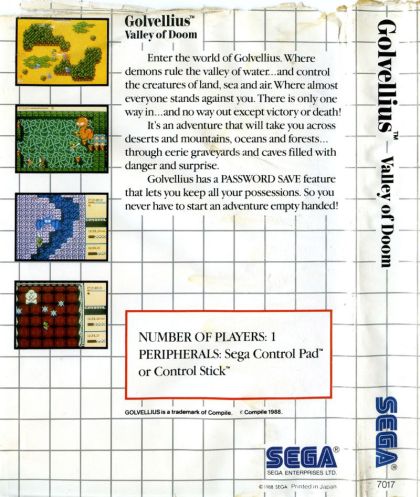 Enter the world of Golvellius. Where demons rule the valley of water. Its an adventure that will take you across deserts and mountains, oceans and forests.