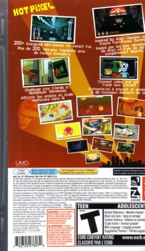 HOT PXL is a collection of micro-games themed around street culture and the digital lifestyle. The rapid fire game play requires players to draw on their old-school arcade prowess to get through hundreds of inspired scenarios ? whether it?s blasting through an old-school, Zaxxon-inspired game, busting tricks on a massive skateboarding half pipe, stage-diving at a pixellated concert or simply trying to cross the street. By playing through the regular game (Story Mode), players unlock new options and alternate versions of the micro-games that encourage social play. HOT PXL will take full advantage of the PSP system's unique capabilities, including the ability to download new content through a PC interface, ensuring hardcore and newbie gamers alike receive the most colourful and original gaming experience around.