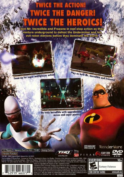 The Incredibles: Rise of the Underminer gives you the chance to be a superhero! The game begins at the end of the hit film, with Underminer's emergence threatening to wreak havoc on the residents of Metroville. Players battle the Underminer and his robot minions in the vast underground world built by this diabolical genius. It's up to Mr Incredible and Frozone to save the day once again. Are you Super enough?