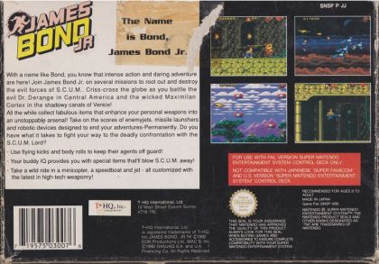 Based off a cartoon series by the same name, you control James Bond's teenage nephew, James Bond Jr. Many scientists have disappeared and it is James Bond Junior's task to find the scientists and save the world. Agents have seen missile sites on an island and they believe that Scumlord is responsible. All in a day's work...