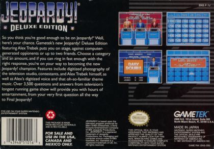 Jeopardy! Deluxe Edition is an updated version of it's Jeopardy! predecessor which features over 3,500 different new questions along with the standard features of Jeopardy such as Daily Doubles, a digitized likeness of the host, Alex Trebek and even the theme music.