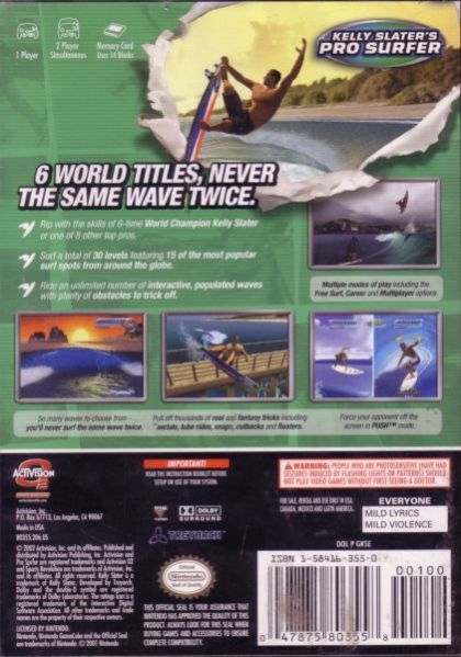 Kelly Slater's Pro Surfer is the most authentic and exhilarating surfing game ever, featuring Kelly Slater, the most recognized surfing pro of all time. Players experience an all-out adrenaline rush as they drop down huge wave faces, pull into barreling tube rides and pull off hundreds of insane trick combinations and signature pro moves. Players can choose to ride as six-time world champion Kelly Slater, or as one of eight of the most accomplished surf pros of all time including Rob Machado, Bruce Irons, Kalani Robb, Lisa Andersen and Tom Curren. The game features multiple modes of play including "Surf Trip" where the gamer chooses their own path, in search of the perfect wave traveling to 13 of the hottest real-world surf breaks from around the world including the U.S., Europe, Africa, Australia and the South Pacific. True to the sport and lifestyle, the game features: authentic in-game sponsors including surfboards, wetsuits, board shorts and apparel; video clips from top surf directors Taylor Steele, Sonny Miller, and Ira Opper; and an innovative, lifestyle oriented soundtrack.