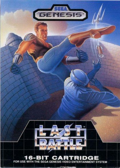 Last Battle is a side-scroller and one of the early games available for the Sega Genesis. Basically, you are the rebel hero who single handed (or footedly) will fight an entire enemies army for freedom of your people. Standard karate fighter side-scroller fare.