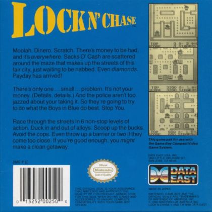 Lock 'n' Chase is a 1981 maze arcade game developed and published by Data East in Japan in 1981, and was later published in North America by Taito. The game was later licensed to Mattel who produced the Intellivision and Atari 2600 home console versions in 1982 and an Apple II version in January 1983. Telegames later re-published the game for the Atari 2600 after acquiring rights from Mattel. Data East released a Nintendo Game Boy version of the game in July 1990. Lock 'n' Chase was Data East's response to Pac-Man.