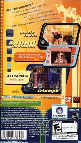 Lumines is a new puzzle offering a higher level of challenge than the classic "falling blocks" games. Follow the light and sound patterns and form 2x2 blocks to clear the screen before it fills up.