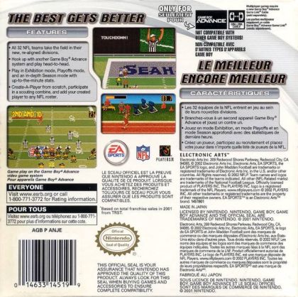 The game of football just got more real with Madden NFL 2003. This year's installment of the Madden NFL Football series features more depth, new animation, realistic player AI, and in-depth play modes. Hop on John Madden's Cruiser Tour Bus and travel to all NFL cities to complete skilled tasks in the all-new Mini-Camp mode. The improved graphics and presentation now show sidearm QBs, gang-tackling, stand-still receiver catches, and more than 300 realistic player faces. Madden NFL 2003 gives you more control than ever before, with faster game speed, a more finely tuned passing game, and independent audibles for defensive line, linebackers, and defensive backs.