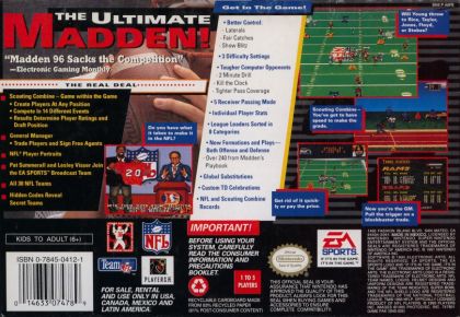 Still includes windowless passing, all new Madden-designed strategies and team match-up that shows how your players stack up to the other team in their position.