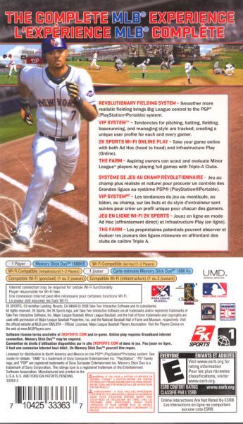 Major League Baseball 2K8 or in shorter terms, MLB 2K8, is a MLB licensed baseball simulation video game developed by Kush Games and published by 2K Sports for the PlayStation 2, PlayStation 3, PlayStation Portable, Wii, and Xbox 360. It was released on March 4, 2008. A demo was released on Xbox Live Marketplace the next day on March 5 for Canada, United States and Asian markets.