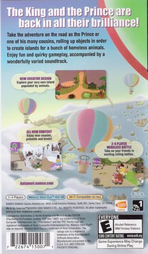 The King of All Cosmos takes a break from celestial construction and takes the royal family on vacation to a tropical island paradise. Here, they become tasked with the responsibility of creating new katamari islands for homeless animals. The King's pint-sized son, the Prince, is called upon for this epic task with the help of all his cousins. Assume the role of the pint-sized prince and grow your katamari by rolling it around cleverly designed locations to collect objects throughout the world.