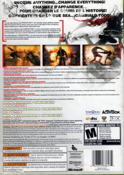 Discover what lies beyond the edge of evolution. An all-new, third-person open-world/action game, PROTOTYPE puts gamers at the helm of Alex Mercer – a genetically mutated shape-shifter with no memory of his past hell-bent on solving the mystery of his existence – as he tears through a densely populated New York City moving with Parkour-style fluidity and consuming anybody that gets in his way…assuming their physical identity, memories and abilities. Fueled by three key factions consisting of Alex, the Blackwatch (military) and a viral outbreak known as the Infected, players will venture into a deep, dark conspiracy 40 years in the making!