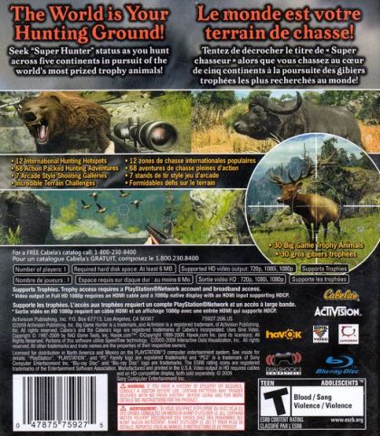 In Cabela's Big Game Hunter 2010, players seek "Super Hunter" status aiming to take their "game" to the next level and join the ranks of hunting's best of the best - a club where it takes much more than tall tales to gain respect. Players must prove their fearlessness and ability by successfully bagging the largest trophies in the world's most rugged regions. The most prized animals can only be reached by climbing cliffs, crossing raging rivers, and facing countless more perilous situations. Brand new elements, such as rewards for successfully using cover to progress through missions and a VITALS system which helps players visualize the perfect shot, promise to make this the most fun and action-packed Cabela's game yet.