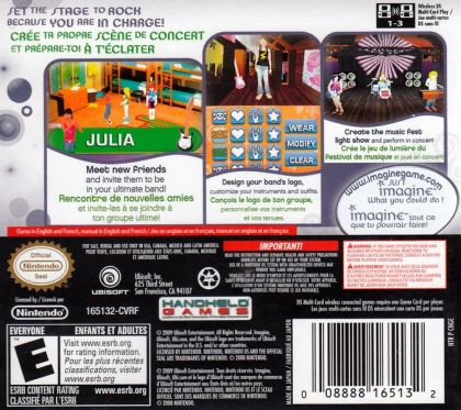In Imagine Music Fest, attend a music academy where players are responsible for forming a band, designing their look and band logo, creating a light show and ultimately leading the performance in a rockin' concert. Play the guitar, drums and keyboards in fun mini-games. Invite other players to join your band and play together through wireless play.