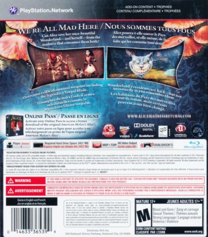 Alice: Madness Returns delves deep into the dark and violent side of the imagination, creating a nightmarish Wonderland where Alice must face the demons that haunt her visions. Visit the grim reality of Victorian London and then travel to the beautiful yet ghastly Wonderland to uncover the root of Alice's madness and discover the truth behind a deadly secret, kept hidden for years.
