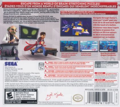 CRUSH 3D tells the story of Danny, an inquisitive character who volunteers to test his friend's amazing C.R.U.S.H. machine. This weird invention gives him amazing powers to explore his own dreams and fears, however, the machine soon becomes so attached to Danny, it traps him in his own subconscious. Now Danny needs your skills to help him escape. Packed with the best gameplay from the original CRUSH game plus a whole host of exciting new 3D features, CRUSH3D takes platform gaming to a level that's as hard to put down, as it is to escape from...