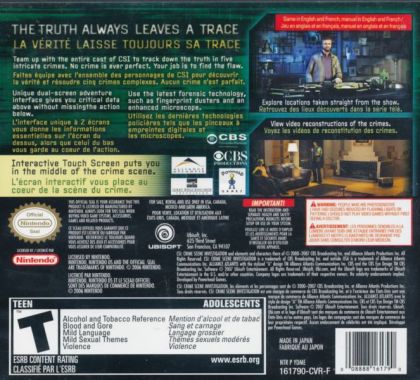 This game, like its prequel CSI: Crime Scene Investigation, its sequel CSI: 3 Dimensions of Murder and CSI: Miami, follows a distinct pattern of five cases, with the fifth case tying together the previous four.