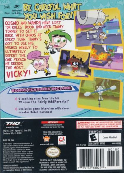 The Fairly OddParents: Breakin' Da Rules is a video game released for the Game Boy Advance, Nintendo GameCube, PlayStation 2, Xbox, and the PC in 2003. It is based on the famous Nickelodeon cartoon, The Fairly OddParents. It was developed by Helixe and published by THQ. Its sequel, The Fairly OddParents: Shadow Showdown is on GameCube, Game Boy Advance and PS2. The console versions of this game features a different plot than the PC version.