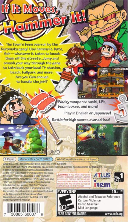 Hammerin' Hero marks the triumphant return of Gen, everyone's favorite justice-bringing carpenter! Help Gen fight off Hyosuke Kuromoku and his evil construction company before they can evict Gen's neighbors from their homes! Gen will have to use a variety of jobs—from DJ to baseball player—through 12 diverse stages if he hopes to thwart the all-out attack of the Kurokomu Group and win the hearts of the people, even if it sometimes means giving them the tough love they need to solve their own problems.