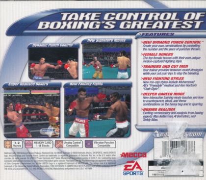 Knockout Kings 2001 features many well known boxers such as Muhammed Ali, Joe Frazier, Rocky Marciano, Michael Grant, Lennox Lewis, Joe Louis, and Jack Dempsey. It also features women's boxing and arenas such as Caesars Palace, Madison Square Garden, Wembley Arena, and the Roman Coliseum.