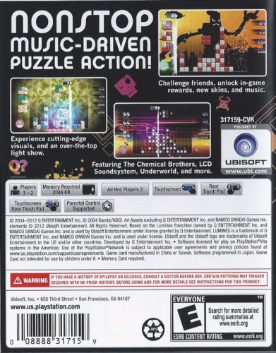 The king of music-puzzle games returns with its first, all-new instalment in over 5 years. Lumines: Electronic Symphony marks the return of Q Entertainment's landmark puzzle series, bringing together addictive block-dropping puzzle action, an all-new 3D graphics engine, and some of the most significant names in electronic music history.