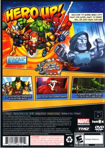 Set in the ever popular Marvel Universe, the Super Hero Squad is on a dire mission against Dr. Doom's Lethal Legion of villains to recover the hidden Infinity Fractals; fragments of the all-powerful Infinity Sword. Each Infinity Fractal holds incredible power and can have significant effects on its possessor, giving each character special abilities that could alter the game's rules and playing field. With more than 20 Marvel characters to mix and match, players can choose to take on the role of their favorite Super Heroes and Super Villains, such as Captain America, Dr. Doom, Falcon, Hulk, Iron Man, Juggernaut, Ms. Marvel, Silver Surfer, Thing, Thor and Wolverine, to name a few. Using character-specific super powers and customized combo attacks, players will blast, punch, and bash in fast-moving combat with their nemesis. Players can either jump into a battle arena against up to three opponents in Battle Mode, or choose to relive six campaigns as depicted from the animated series in Adventure Mode. Marvel Super Hero Squad is an immersive, single and multiplayer game filled with dramatic, interactive environments where players are given extraordinary powers to fight for good or evil, depending on which Super Hero Squad character they chose to play as.