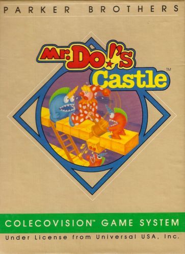 Mr. Do!'s Castle is an action platform game which has you in a castle consisting of several floors, each of which contain a variety of blocks. You control Mr. Do! the clown who has a hammer which can be used to knock out the blocks in the floor. Wandering throughout the castle are deadly unicorns which are constantly trying to catch you. Your goal is to earn as many points as possible and to progress through the increasingly difficult castles. There are two ways to complete a castle; you can either destroy all of the deadly unicorns by crushing them with blocks, or you can knock out all of the blocks which have a cherry symbol on them. In addition to the cherry blocks, there are three blocks with a key. If all three key blocks are knocked out, the door on the roof of the castle unlocks. If you make it to the door, all of the unicorns will temporarily become harmless and will contain a letter. If you hit a letter unicorn, you will earn a letter in the word EXTRA. Spell the complete word, and you will earn an extra life. The last type of block you'll encounter has a skull on it. If you knock out two skull blocks, all of the blocks between them will also be knocked out and replaced with a bridge. As the castles progress, the castle layout will become trickier and the unicorns become faster and more numerous.
