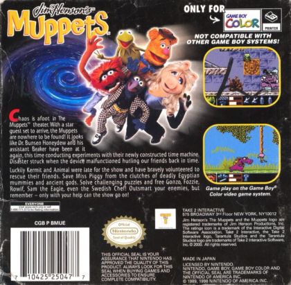 Jim Henson's Muppets is a 2000 GameBoy Color game in which Kermit the Frog and Animal have to rescue their friends, who are transferred back in time by Dr. Bunsen Honeydew's time machine.
