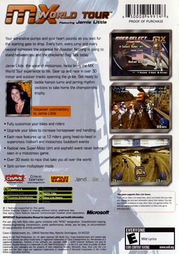 MX World Tour Featuring Jamie Little bring the world of motocross to life with its voice, Jamie Little. Your adrenaline will pump and your heart will pound as you wait for the starting gate to drop. Every turn, every jump and every second increases the potential for disaster. Don't let anything stand between you and that checkered flag! Split-screen multiplayer mode