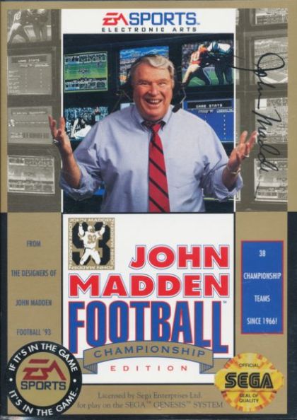 John Madden Football '93 is a 1992 sports video game developed by Blue Sky Productions (later Looking Glass Studios) and Electronic Arts and published by EA Sports Network. Based on the sport of American football, the game tasks the player with controlling a football team in modes such as tournament play and sudden death. It was officially endorsed by John Madden.
