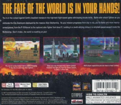 Independence Day is a 1997 video game based on the movie of the same name. It was released in 1997 for the PlayStation, PC, Sega Saturn, and Mobile.