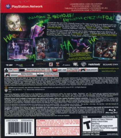 In Batman: Arkham Asylum, developed by Rocksteady Studios, the player assumes the role of Batman as he delivers The Joker to Arkham Asylum. There, the imprisoned super-villains have set a trap and an immersive combat gaming experience unfolds. With an original script penned by Emmy Award-winning Batman writer Paul Dini, the game brings the universe of DC Comics' detective to life with stunning graphics.