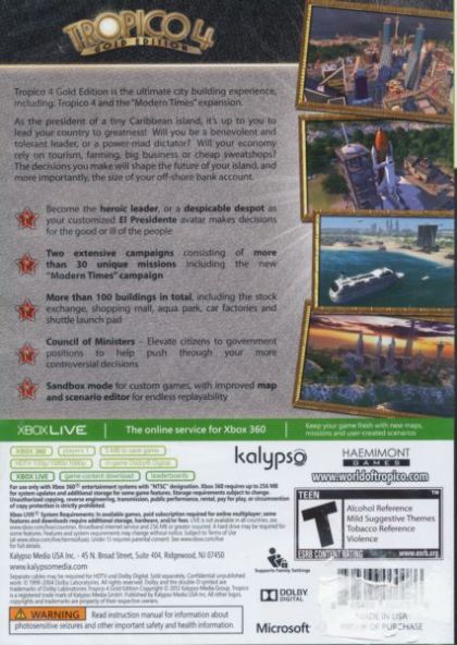 Tropico 4 sees you return as El Presidente, the tyrannical (or benevolent) dictator of the island paradise of Tropico. The world is changing and Tropico is moving with the times - geographical powers rise and fall and the world market is dominated by new players with new demands and offers -- and you, as El Presidente, face a whole new set of challenges. If you are to triumph over your naysayers you will need to gain as much support from your people as possible. Your decisions will shape the future of your nation, and more importantly, the size of your off-shore bank account.