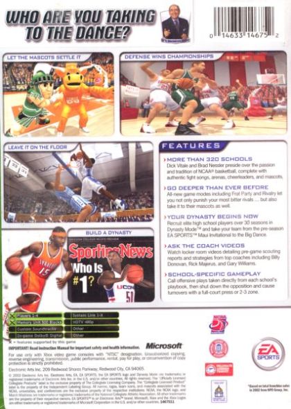 NCAA March Madness 2004 storms the court with new schools, improved gameplay, and an incredibly deep Dynasty Mode. Dick Vitale, the voice of college hoops, takes you through the sport's strategy and drama all the way to the "Big Dance" like no one else can. The unique, fast-paced game comes to life with players applying pressure D, diving on loose balls, and throwing it down against rival schools. You can also connect to EA SPORTS online for the PlayStation 2 for matchup gameplay, tournaments, downloadable content, and more. Featuring EA SPORTS Freestyle Control and strategic expertise from the EA SPORTS Coaches Council, NCAA March Madness 2004 delivers the authentic emotion and passion that can only be found in college basketball.