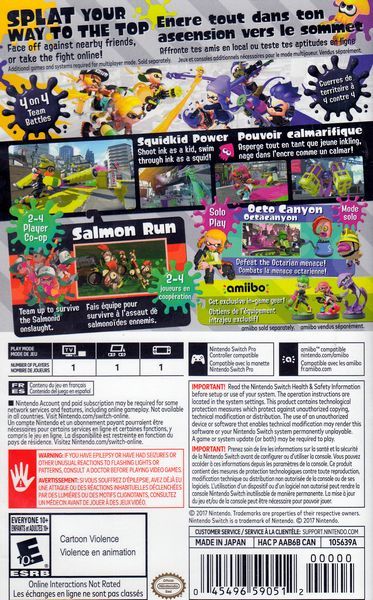 Claim turf anytime, anywhere, with anyone in Splatoon 2, only on Nintendo Switch. Traditional 4-on-4 turf battles return in this full sequel, along with returning modes, new stages, new fashions, new weapons and much more!