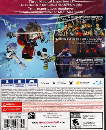KINGDOM HEARTS HD 2.8 Final Chapter Prologue is a compilation that brings the popular KINGDOM HEARTS [Dream Drop Distance] to the PlayStation®4 computer entertainment system platform, remastered in high definition.